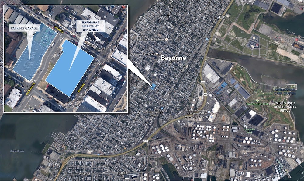 The project site for the ambulatory care facility Barnabas Health–Bayonne is located along one of the busiest thoroughfares in downtown Bayonne, N.J., within an area targeted by the city for redevelopment. When the facility opens, it will include an emergency department, imaging center, retail pharmacy, pediatric center and more.