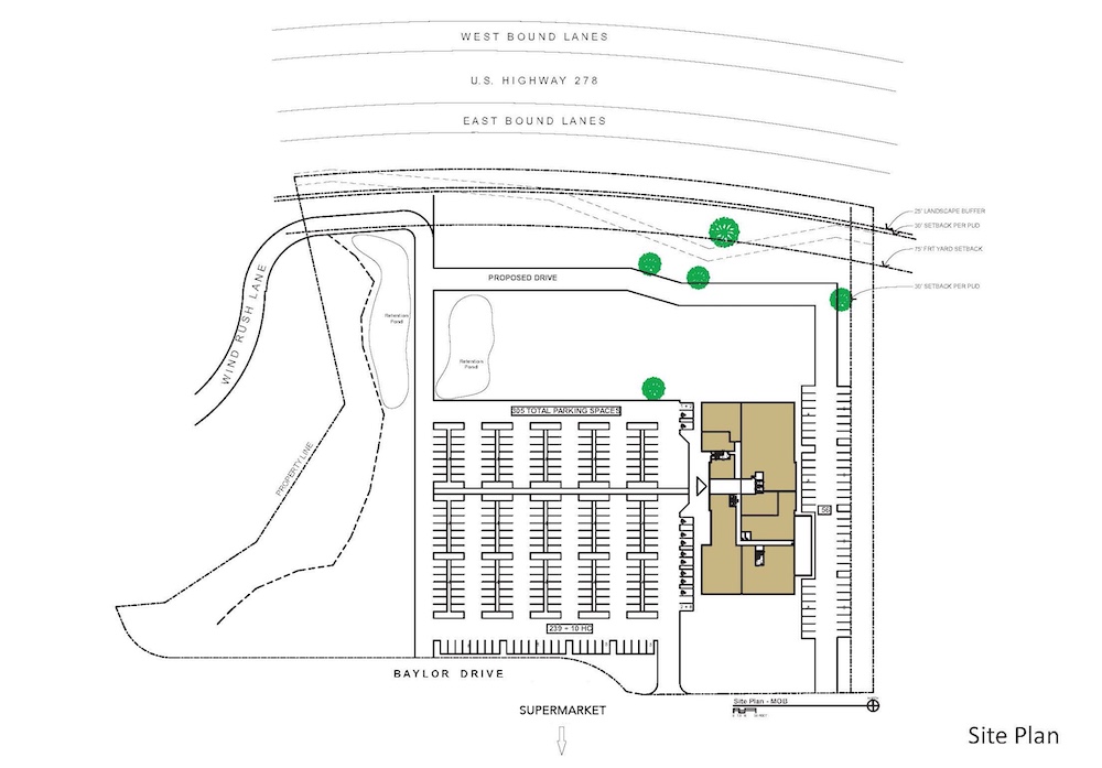 The Bluffton (S.C.) Medical Campus is located in a shopping center anchored by a prominent supermarket chain, adding another layer of complexity to project negotiations and approvals.